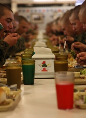 U.S. Marine recruits eat at the First Recruit Training Battalion mess hall. (photo by Sgt. Esdras Ruano)