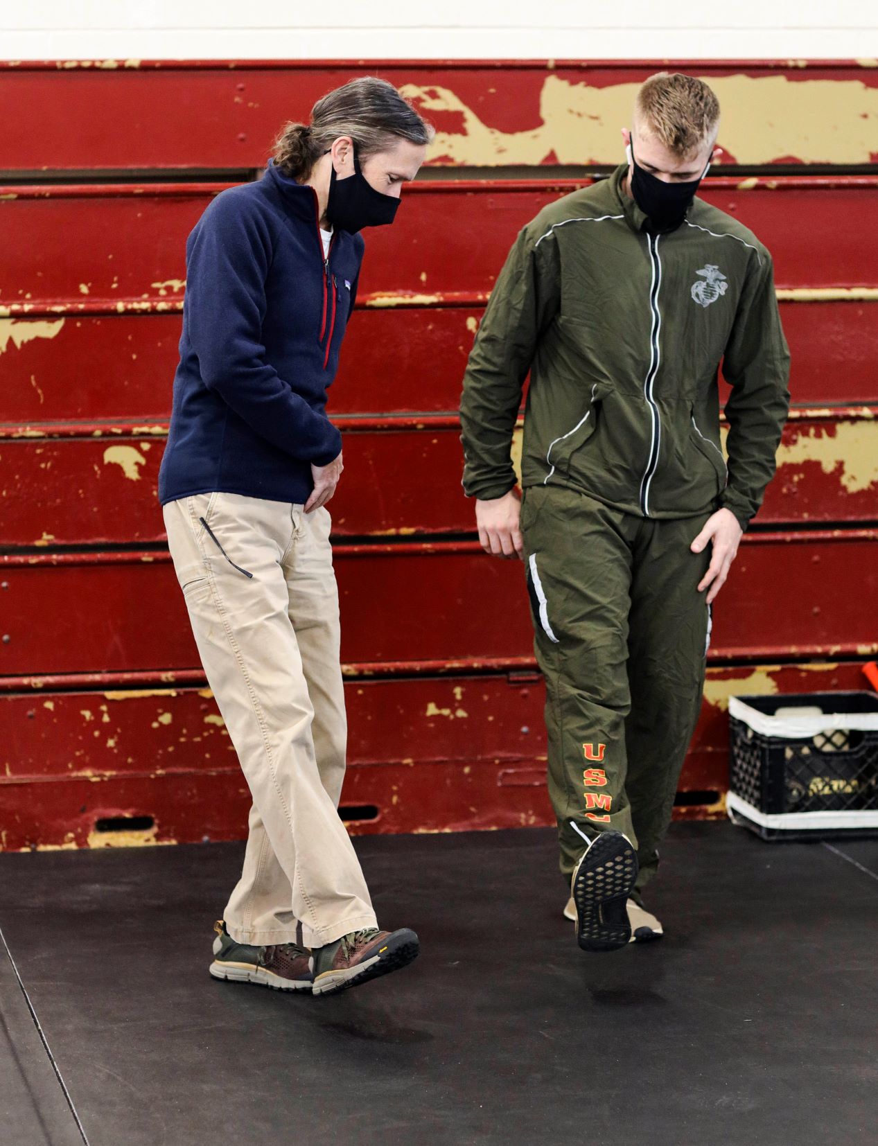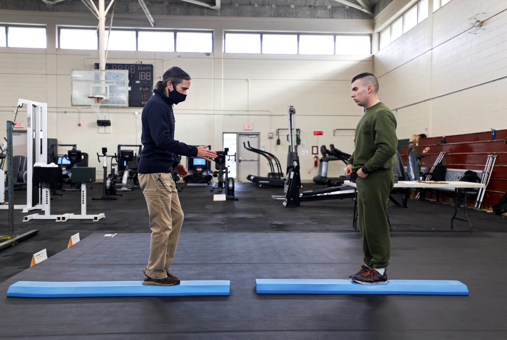 “I give the drill instructors classes on injury prevention in between cycles,” said Jay Gibson, the athletic trainer for 1st Recruit Training Battalion. “I make sure they know how to do everything properly as well as watching out for the recruit, so they can help mitigate injuries as well.”